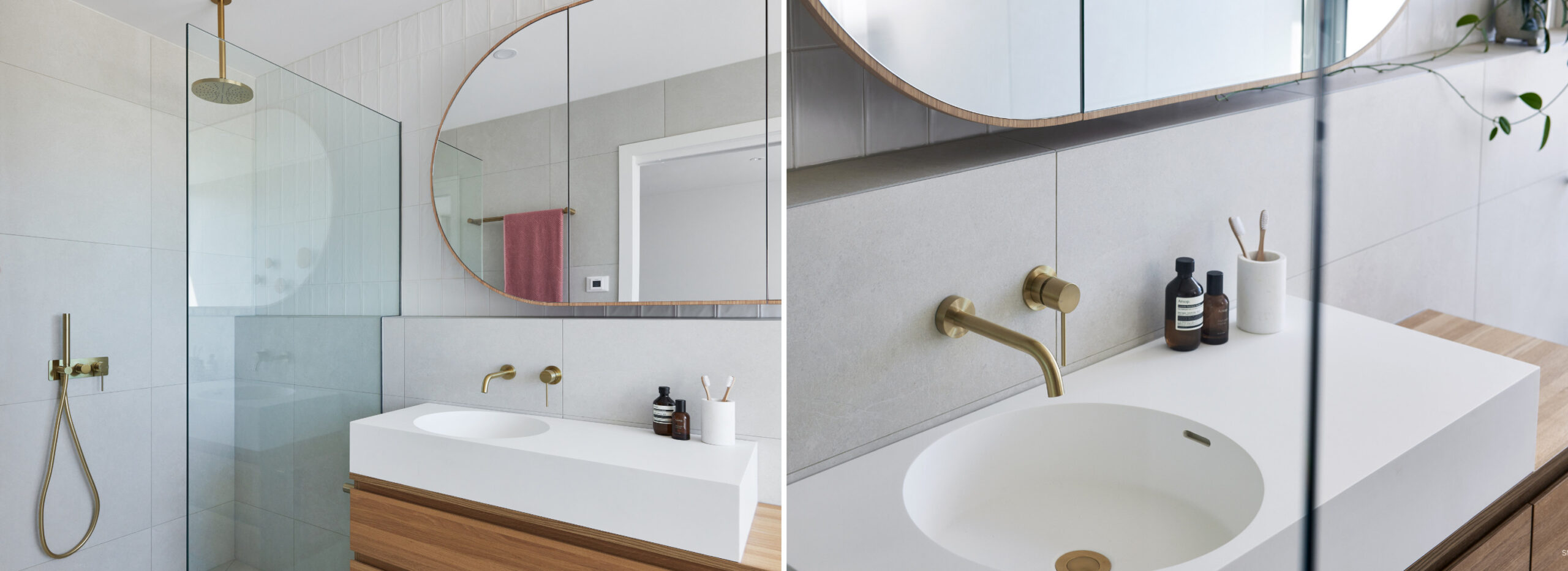 In terms of aesthetics, brushed brass tapware and accessories were carefully chosen to complement the warm tones of the space, adding an elegant touch to the overall design.