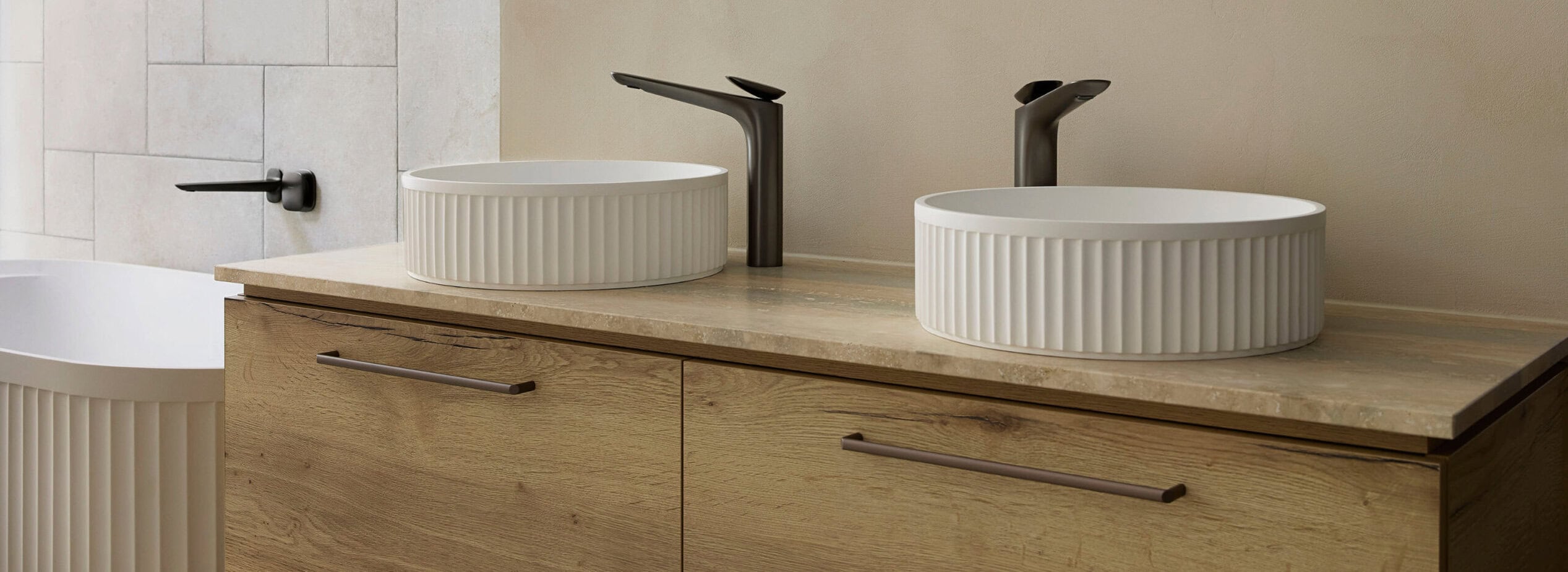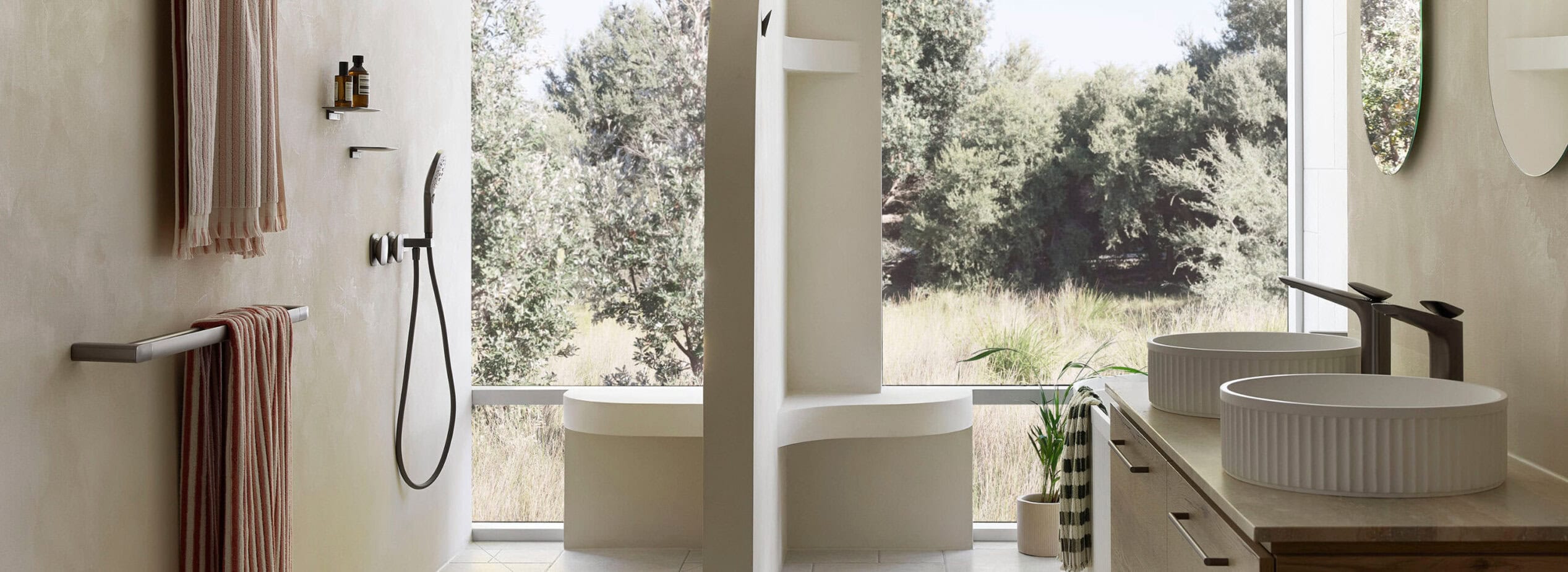 Introducing a sanctuary of tranquillity and elegance, our new bathroom design merges a serene colour palette, functional elements, and carefully curated products to create a space of timeless beauty and relaxation.