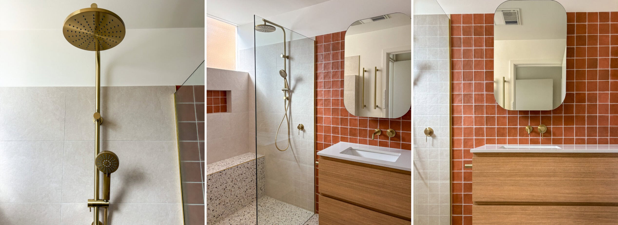 This bathroom renovation is a confident expression of Modern Mediterranean design, layered with contemporary terracotta tones and subtle mid-century modern influence. The space balances warmth and restraint, using materiality and colour to create a bathroom that feels grounded, refined and distinctly European in character.