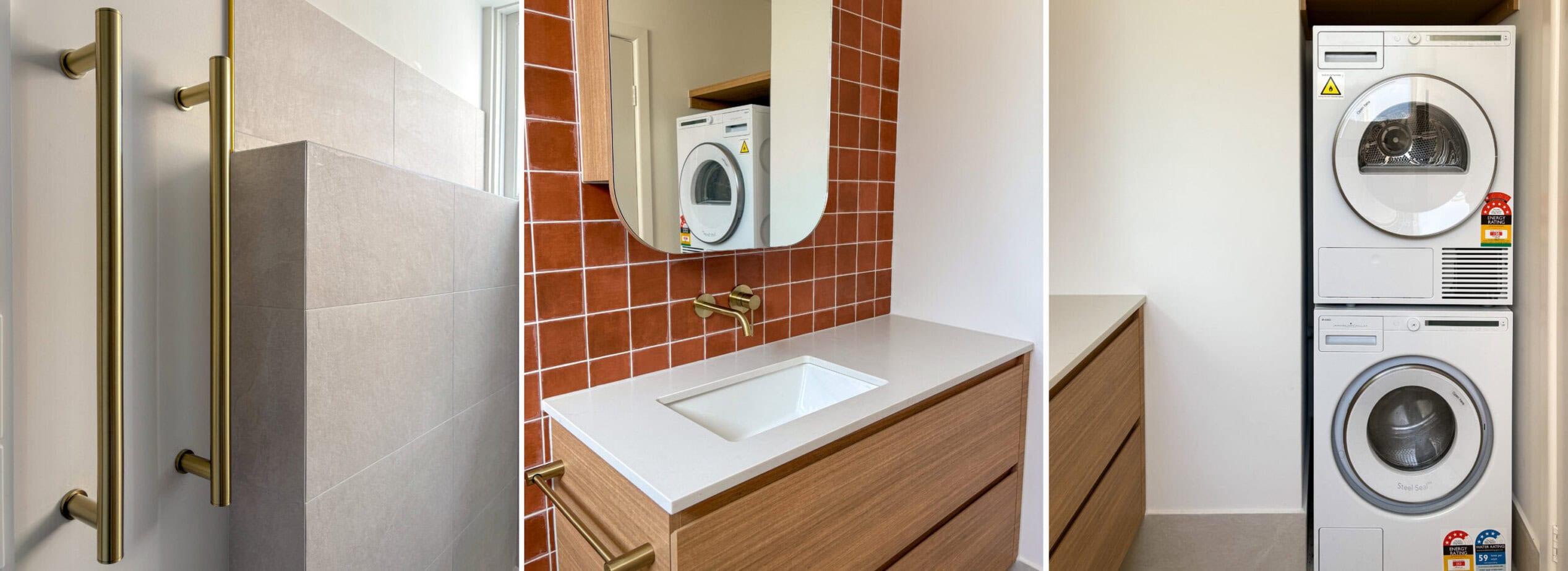 Overall, this bathroom renovation demonstrates how thoughtful material selection and brand-led specification can create a space that feels warm, modern and enduring. Through the considered use of Laminex, Caesarstone, Phoenix, Terre and Milanese, the design achieves a refined Modern Mediterranean bathroom that is both visually rich and highly functional.